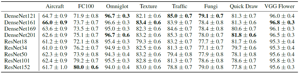 위 표는 5-way, 5-shot task에서 각각의 library-based learner가 각각의 데이터셋에 대해 보이는 성능을 나타낸 것입니다. 어떤 모델이 대체로 우수하다 라는 일관성은 나타나지 않았습니다.