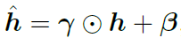 \[\hat{\mathbf{W}}=\gamma\odot\cfrac{\mathbf{W}-\mu}{\sigma}+\beta, \hat{\mathbf{b}}=\mathbf{b}+\mathbf{b}_{FC}\]